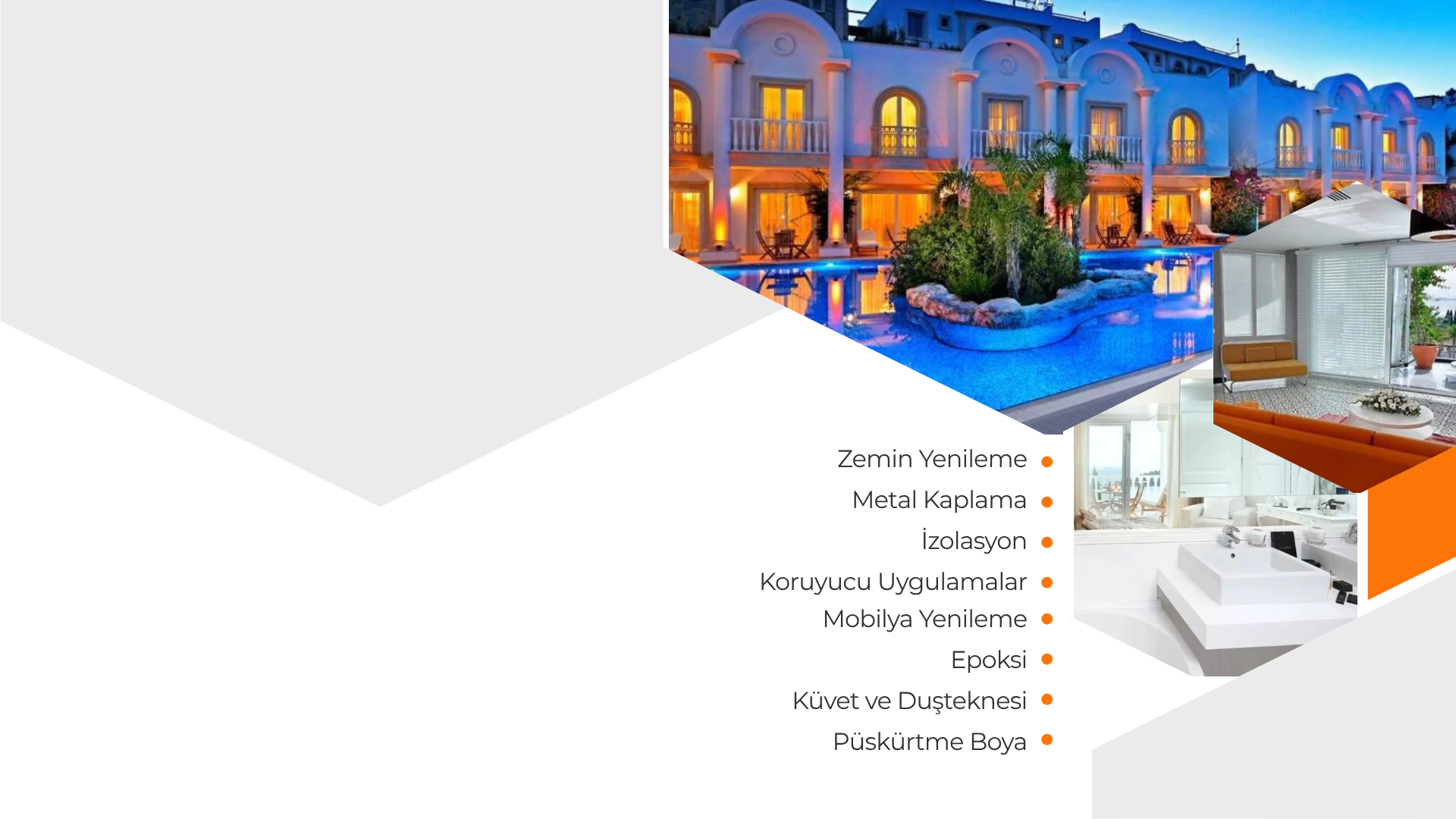 Banyo, havuz, teras gibi suyun bulunduğu her ortamda korozyon ve küflenme gibi sorunların önüne geçmek için koruyucu uygulamalar sağlıyoruz. Genel veya lokal uygulamalar yaparak hem ekonomik hem de hızlı çözümler sunuyoruz.